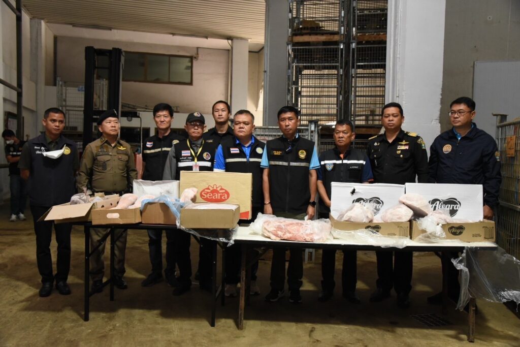 กรุงเทพฯ 2 พ.ย. – อธิบดีกรมปศุสัตว์ เผยสำนักงานปศุสัตว์จังหวัดสมุทรสาคร ผนึกกำลังกับสำนักงานประมง และ กอ.รมน.จังหวัดสมุทรสาคร บุกตรวจห้องเย็น พบเนื้อและชิ้นส่วนหมูซึ่งมีต้นทางจากประเทศบราซิล ถึง 126 ตัน และปีกไก่เกือบครึ่งตัน แต่ผู้ประกอบการไม่สามารถนำเอกสารการเคลื่อนย้ายมาแสดงได้ สงสัยลักลอบนำเข้า เตรียมดำเนินคดีตาม พ.ร.บ.โรคระบาดสัตว์