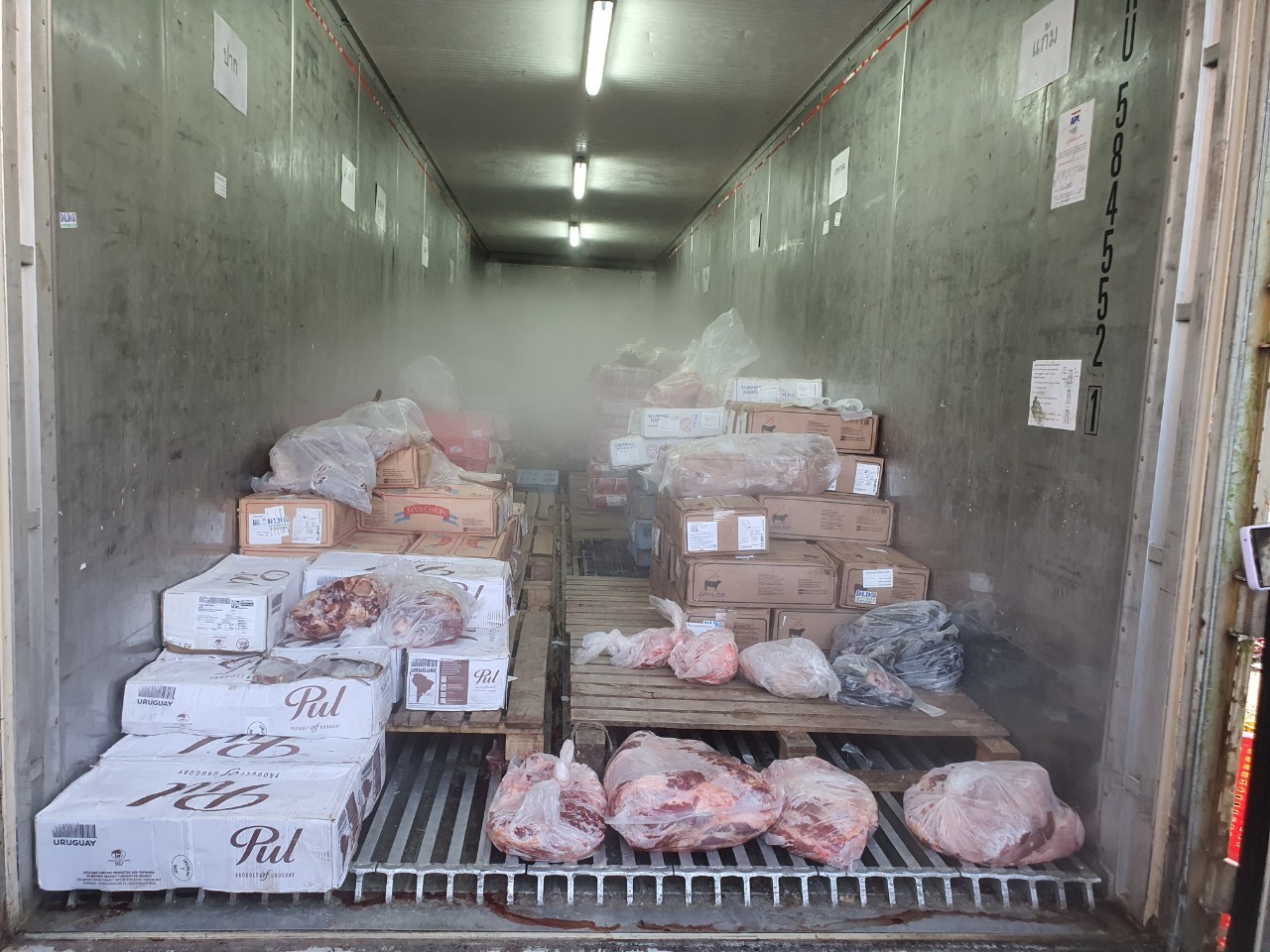พนักงานเจ้าหน้าที่จึงได้อายัดของกลางทั้งหมดไว้ในตู้คอนเทนเนอร์ทำความเย็น ณ สถานที่เกิดเหตุ โดยให้ผู้ประกอบการนำเอกสารมาสำแดงต่อเจ้าหน้าที่ภายใน 15 วัน หากไม่มาแสดงเอกสารภายในเวลาที่กำหนด พนักงานเจ้าหน้าที่จะดำเนินการแจ้งข้อกล่าวหาตามมาตรา 22 และมาตรา 31 ต่อพนักงานสอบสวนของ สภ.พื้นที่ต่อไป