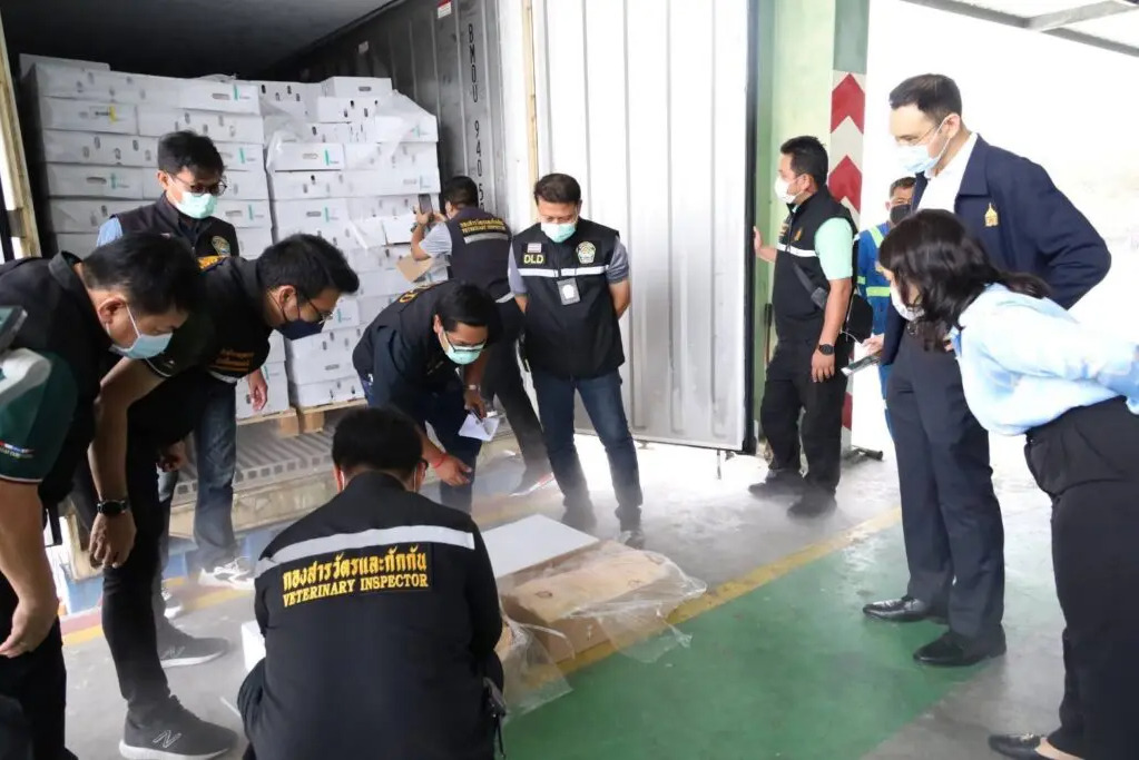 หลังจากที่กรมปศุสัตว์ได้รับมอบของกลางจากกรมศุลกากร 161 ตู้คอนเทนเนอร์แล้วเมื่อวันที่ 29-30 กันยายน 2566 กรมปศุสัตว์ได้เผาทำลาย 1 ตู้ ณ สำนักงานชลประทานที่ 9 จังหวัดชลบุรีและนำไปฝังทำลาย 20 ตู้ ณ ศูนย์วิจัยและพัฒนาอาหารสัตว์สระแก้ว ตำบลคลองไก่เถื่อน อำเภอคลองหาน จังหวัดสระแก้ว ต่อมาเกิดจากความไม่สบายใจของประชาชนในพื้นที่ที่เกี่ยวกับกลิ่นและสุขอนามัยจึงจำเป็นต้องหาสถานที่ใหม่ แม้การฝังทำลายซากสัตว์นั้น กรมปศุสัตว์ดำเนินการตามมาตรฐานขององค์การสุขภาพสัตว์โลก (World Organization for Animal Health หรือ WOAH) ซึ่งเป็นวิธีที่เหมาะสมในการทำลายซากและของเสียจากสัตว์ปริมาณมากที่สามารถทำได้ง่าย ประหยัดค่าใช้จ่าย มีประสิทธิภาพในการป้องกันการแพร่กระจายของเชื้อโรค และไม่กระทบต่อสิ่งแวดล้อม