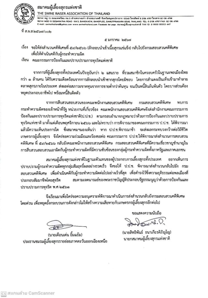 สำหรับข้าราชการประจำและข้าราชการการเมืองที่เกี่ยวข้องซึ่งดีเอสไอเคยให้ข่าวว่า ส่งเรื่องให้ป.ป.ช. พิจารณาแล้ว สมาคมผู้เลี้ยงสุกรแห่งชาติและชมรมผู้เลี้ยงสุกรรายย่อยภาคตะวันออกเฉียงเหนือเพิ่งทำหนังสือถึงคณะกรรมการป้องกันและปราบปรามการทุจริตแห่งชาติเพื่อขอให้เร่งรัดพิจารณาและส่งสำนวนคดีพิเศษกลับไปยังดีเอสไอเพื่อให้ดำเนินคดีกับผู้กระทำความผิดครอบคลุมทุกกลุ่ม