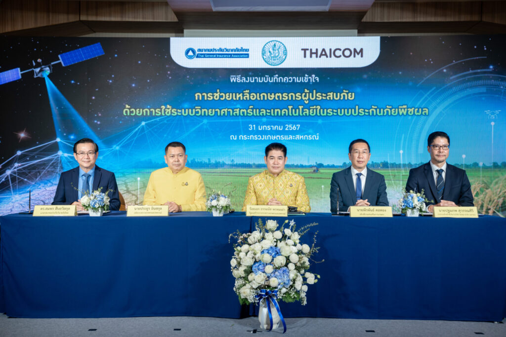 นายปฐมภพ สุวรรณศิริ ประธานเจ้าหน้าที่บริหาร บมจ.ไทยคม กล่าวว่า ไทยคมมีเจตนารมณ์สำคัญในการดำเนินธุรกิจให้เติบโตอย่างมั่นคง ควบคู่ไปกับการช่วยพัฒนาประเทศชาติให้เกิดความยั่งยืน ด้วยการพัฒนาโซลูชันที่ได้ข้อมูล Big Data จากอวกาศ มาวิเคราะห์ร่วมกับ Artificial Intelligence (AI) และ Machine Learning (ML) เพื่อนำไปใช้วางแผนในการบริหารจัดการให้กับประเทศในหลายมิติ โดยเฉพาะภาคการเกษตรไทย ซึ่งเป็นอุตสาหกรรมสำคัญของประเทศ ดังนั้น การผนึกกำลังกับกรมส่งเสริมการเกษตร และสมาคมประกันวินาศภัยไทย จึงเป็นการตอกย้ำพันธกิจของไทยคม ที่ได้นำความเชี่ยวชาญในธุรกิจดาวเทียมและเทคโนโลยีอวกาศ มาต่อยอดให้เกิดเป็นแพลตฟอร์มในการประกันภัยพืชผล เพื่อช่วยเหลือเกษตรกรที่ได้รับผลกระทบให้ได้รับประโยชน์สูงสุดจากโครงการนี้