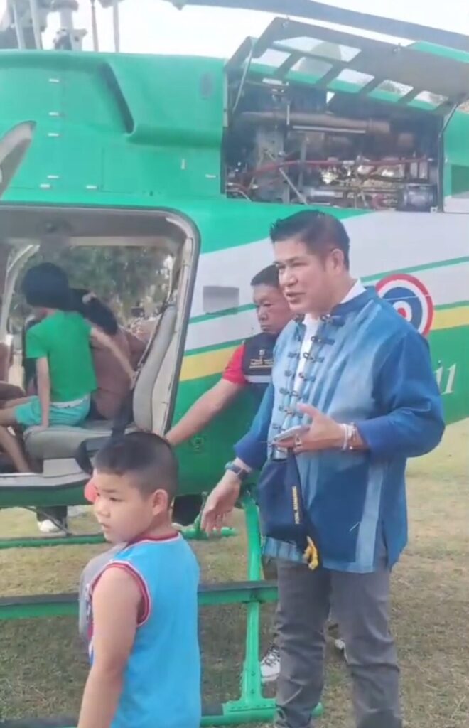 ขณะจะเดินทางกลับจากการรับฟังความคิดเห็นของราษฎร ร้อยเอกธรรมนัสเห็นเด็กๆ มารอถ่ายภาพกับเฮลิคอปเตอร์ของกรมฝนหลวงและการบินเกษตรที่จอดอยู่กลางสนามอบต. ร่มเย็นจึงเปิดโอกาสให้เด็กๆ ผลัดกันขึ้นไปนั่งบนเฮลิคอปเตอร์ซึ่งสร้างความตื่นเต้นดีใจให้แก่เด็กๆ เป็นอย่างมาก.- 512 – สำนักข่าวไทย