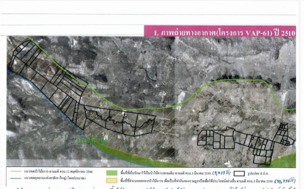 นอกจากนี้ยังทบทวนการดำเนินการของรัฐบาลเกี่ยวกับการจำแนกพื้นที่ป่าให้นำมาจัดสรรเป็นที่ทำกินของเกษตรกรในอดีตและข้อกฎหมายที่เกี่ยวข้องทั้งหมด ซึ่งพบว่าใน พ.ศ. 2502 มีมติ ครม.ให้จำแนกที่ดินในประเทศไทย โดยให้แยกเป็นที่ดินที่จะสงวนเป็นเขตป่าไม้ และที่ดินที่จะนำไปจัดสรรให้ราษฎรทำกิน ตามคำแนะนำขององค์การอาหารและเกษตรแห่งสหประชาชาติ (FAO) ในปี 2493 โดยมอบให้กระทรวงมหาดไทย ร่วมกับกระทรวงเกษตรและสหกรณ์ ดำเนินการ