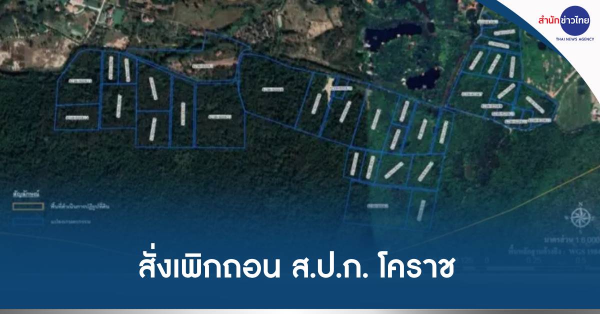 กรุงเทพฯ 14 มี.ค. – เลขาธิการสำนักงานการปฏิรูปที่ตินเพื่อเกษตรกรรม เผยสั่งเพิกถอน ส.ป.ก. 4-01 ใน จ.นครราชสีมา พร้อมยกเลิกผลการรังวัดแปลงที่ดินไว้แล้ว แต่ยังไม่มีการจัดที่ดิน รวม 1,279 ไร่ เนื่องจากพื้นที่ดังกล่าวมีสภาพป่า