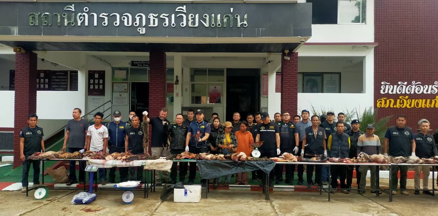ทั้งนี้สามารถจับกุมผู้ค้าซากสัตว์ป่าได้ 4 รายซึ่งข้ามมาจากเมืองห้วยทราย แขวงบ่อแก้ว สปป. ลาว โดยของกลางที่ตรวจยึดได้แก่