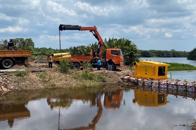 – สำนักงานชลประทานที่ 11 ติดตั้งเครื่องสูบน้ำเคลื่อนที่ ขนาด 12 นิ้ว จำนวน 1 เครื่อง บริเวณปลายคลองโซน 19 ตำบลบางตาเถร อำเภอสองพี่น้อง จังหวัดสุพรรณบุรี
