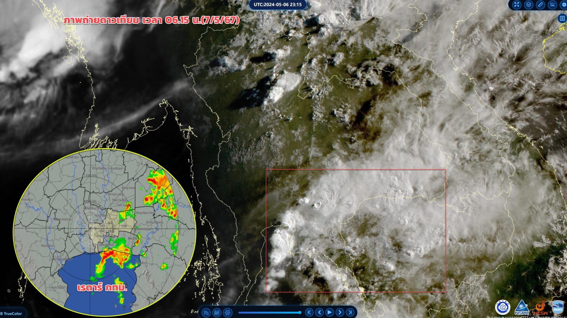 นายสมควร ต้นจาน ผู้อำนวยการกองตรวจและเฝ้าระวังสภาวะอากาศ กรมอุตุนิยมวิทยากล่าวว่า เช้าวันนี้ (7 พฤษภาคม) กทม. และปริมณฑลมีฝนฟ้าคะนอง ภาพถ่ายดาวเทียมแสดงให้เห็นถึงเมฆฝนที่ยังปกคลุม โดยรวมถึงบริเวณภาคตะวันออกและตะวันออกเฉียงเหนือตอนล่างด้วย