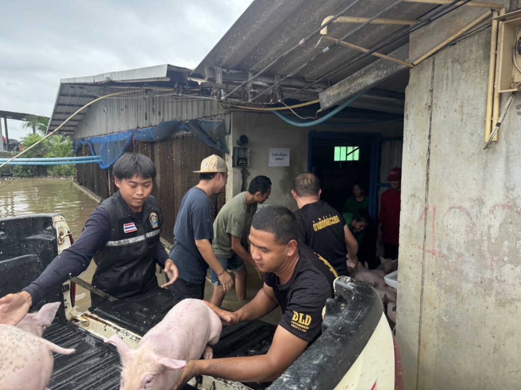 ทั้งนี้ร้อยเอกธรรมนัส พรหมเผ่า รัฐมนตรีว่าการกระทรวงเกษตรและสหกรณ์สั่งการให้กรมปศุสัตว์ช่วยเหลือเกษตรกรผู้ประสบอุทกภัยอย่างเต็มที่ ล่าสุดเกิดฝนตกหนักที่จังหวัดตราดทำให้เกิดน้ำท่วมฟาร์มสุกรในหมู่ที่ 4 ตำบลแสนตุ้ง อำเภอเขาสมิง ด่านกักกันสัตว์ตราด พร้อมด้วยด่านกักกันสัตว์ตราดและปศุสัตว์จังหวัดตราดร่วมกับเจ้าหน้าที่ปกครองจังหวัดตราด นายอำเภอเขาสมิง ป้องกันและบรรเทาสาธารณภัยตราด เจ้าหน้าที่ทหารมณฑลทหารบกที่ 19 หน่วยนาวิกโยธินจันทบุรี-ตราด จิตอาสา กำนัน ผู้ใหญ่บ้านบ้านทางควายช่วยเหลือในการขนย้ายสุกรจากฟาร์มชื่อ ณรงค์ศักดิ์ อภิพัฒน์ ฉัตรชัย ลินดา ฟาร์มซึ่งมีโรงเรือนสุกร 8 โรงเรือน จำนวน 8,000 ตัวเพื่อย้ายไปไว้ที่ฟาร์มจำเรียงกับสุรพลฟาร์มในหมู่เดียวกัน แต่ตั้งอยู่ในที่สูง สุกรในฟาร์มที่ถูกน้ำท่วมเป็นลูกสุกรอายุ 6-12 สัปดาห์ ตายประมาณร้อยละ 5-10 คาดว่า จะขนย้ายแล้วเสร็จประมาณ 22.00 น. คืนนี้