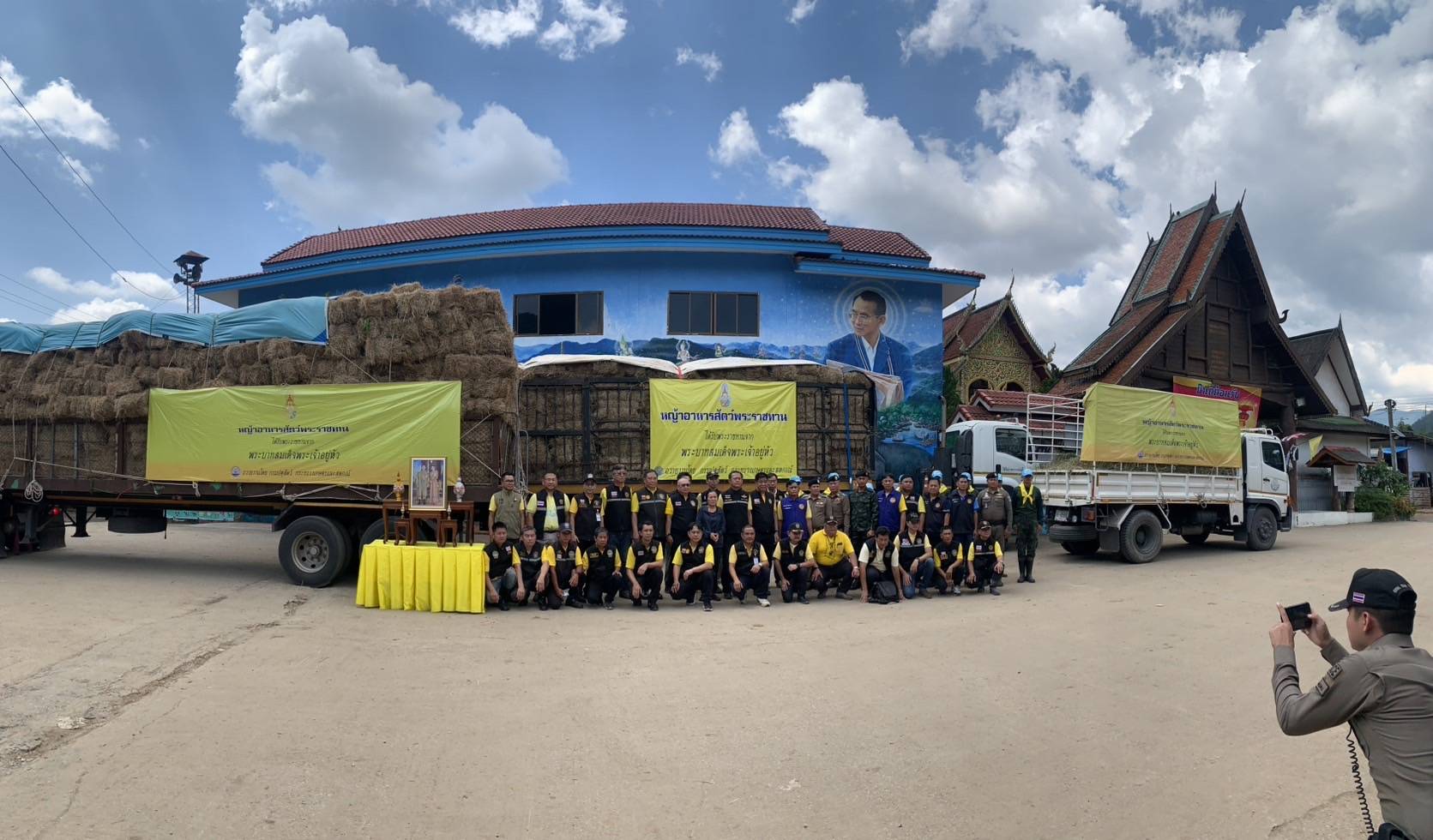 นายสัตวแพทย์สมชวน รัตนมังคลานนท์ อธิบดีกรมปศุสัตว์เปิดเผยว่า มอบหมายให้นายสัตวแพทย์ประภาส ภิญโญชีพ รองอธิบดีกรมปศุสัตว์และนายพงษ์พันธ์ ธรรมมา รองอธิบดีกรมปศุสัตว์ นำเจ้าหน้าที่ของกรมปศุสัตว์เดินทางไปส่ง “หญ้าอาหารสัตว์พระราชทาน” เพื่อช่วยเหลือปางช้างที่ประสบอุทกภัยในอำเภอแม่แตง จังหวัดเชียงใหม่ สำหรับหญ้าที่นำส่งไปช่วยเหลือปางช้างในอำเภอแม่แตง สามารถให้กินได้ทั้งช้าง วัว ควาย แพะ และแกะ โดยนำไปทั้งหญ้าสดและหญ้าแห้ง แบ่งเป็นหญ้าสด 3,000 กิโลกรัม หญ้าแห้ง 32,000 กิโลกรัม รวมทั้งสิ้น 35,000 กิโลกรัมหรือ 35 ตัน ในการส่งมอบ “หญ้าอาหารสัตว์พระราชทาน” เพื่อช่วยเหลือปางช้างในอำเภอแม่แตงครั้งนี้ กรมปศุสัตว์ร่วมกับนายชัยณรงค์ นันตาสาย นายอำเภอแม่แตง พันโทวัชระ ถึกสุวรรณ์ ผบ. ร.7 พัน.2 นำส่งไปเก็บไว้ที่โครงการอนุรักษ์พันธุกรรมพืช อันเนื่องมาจากพระราชดำริสมเด็จพระเทพรัตนราชสุดาสยามบรมราชชนนี ศูนย์อนุรักษ์และพัฒนาท้องถิ่น ตำบลกึ๊ดช้าง ซึ่งใช้เป็นสถานที่จัดเก็บรักษาเสบียงอาหารสัตว์ เพื่อนำไปกระจายช่วยเหลือปางช้างต่างๆ ที่ได้รับผลกระทบในพื้นที่ต่อไป