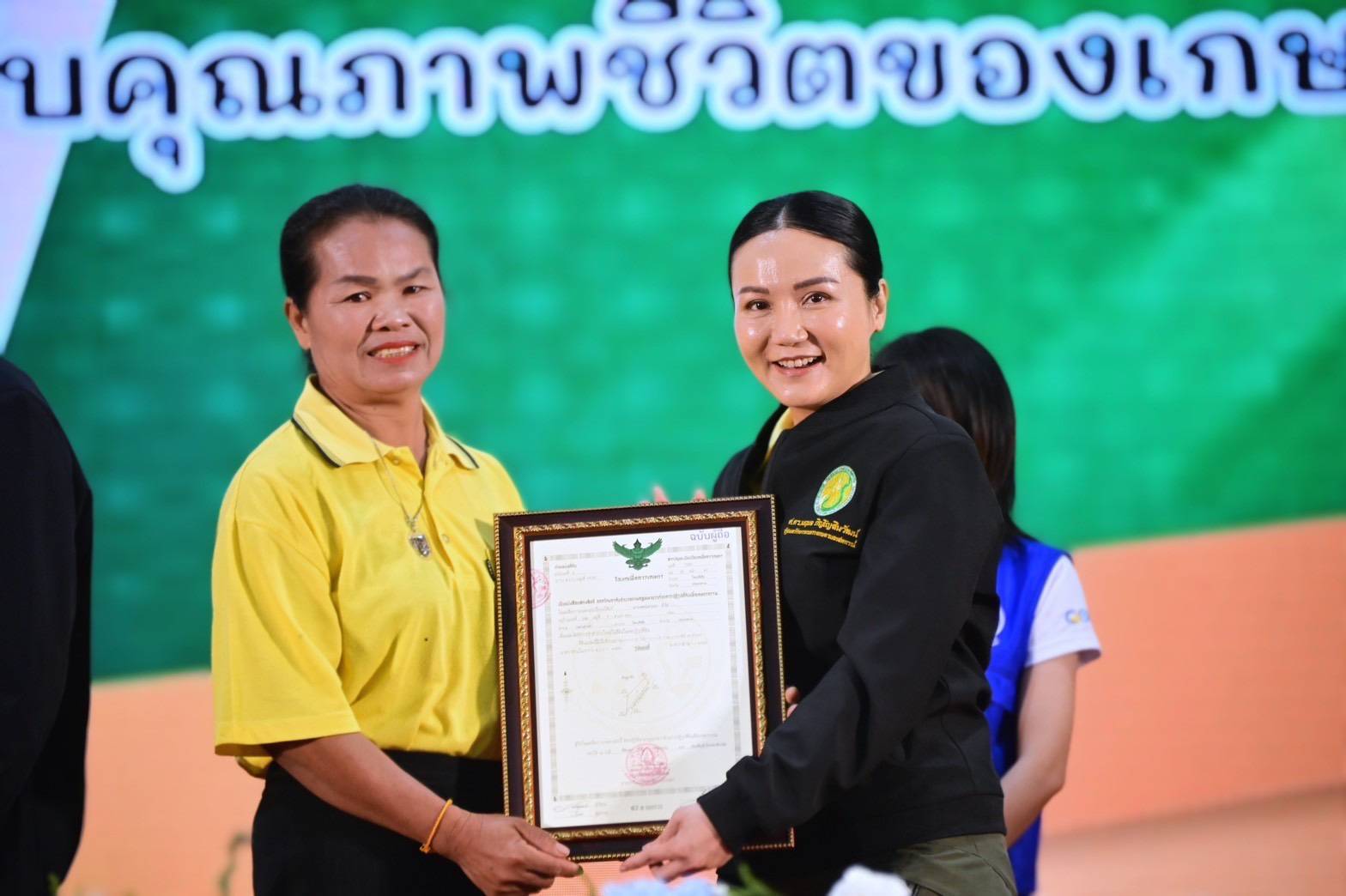 ในโอกาสนี้ ศ.ดร.นฤมลและนายอิทธิ ศิริลัทธยากร รัฐมนตรีช่วยว่าการกระทรวงเกษตรและสหกรณ์ได้ร่วมกันมอบโฉนดเพื่อการเกษตร 100 ราย พร้อมปัจจัยการผลิต อาทิเมล็ดพันธุ์ข้าว 1,300 ตัน พันธุ์ปลา หญ้าแพงโกล่าแห้ง ถุงยังชีพปศุสัตว์ และเครื่องมืออุปกรณ์ทอผ้าไหมเกษตรกรอาชีพปลูกหม่อนเลี้ยงไหม แก่ตัวแทนเกษตรกรผู้มาร่วมงานด้วย.-512-สำนักข่าวไทย