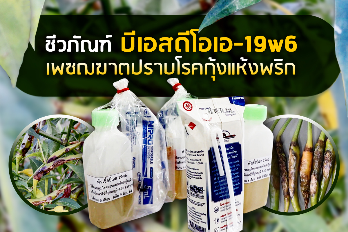 สวพ.3จึงได้วิจัยและพัฒนาชีวภัณฑ์ชนิดใหม่ โดยนำเชื้อแบคทีเรีย บาซิลลัส ซับทิลิส (บีเอส) ที่มีการคัดเลือกเบื้องต้นจากห้องปฏิบัติการต่างๆ มาศึกษาต่อยอด ทดสอบประสิทธิภาพการยับยั้งเชื้อราสาเหตุโรคแอนแทรคโนสของพริก และพัฒนาวิธีการผลิตให้เป็นชีวภัณฑ์แบบพร้อมใช้ที่ผลิตขยายได้ง่ายและต้นทุนต่ำ จนได้ชีวภัณฑ์บีเอส ดีโอเอ-19W6 ซึ่งเป็นสายพันธุ์ที่สำนักวิจัยพัฒนาการอารักขาพืช (สอพ.)หน่วยงานในส่วนกลางของกรมวิชาการเกษตรได้ทดสอบว่ามีประสิทธิภาพสามารถควบคุมโรคกุ้งแห้งพริกได้ผล โดยชีวภัณฑ์ บีเอส ดีโอเอ-19W6 มีจุดเด่นที่สามารถผลิตขยายได้ง่ายเกษตรกรสามารถผลิตเองได้ตรงตามวัตถุประสงค์ของการวิจัยและพัฒนา