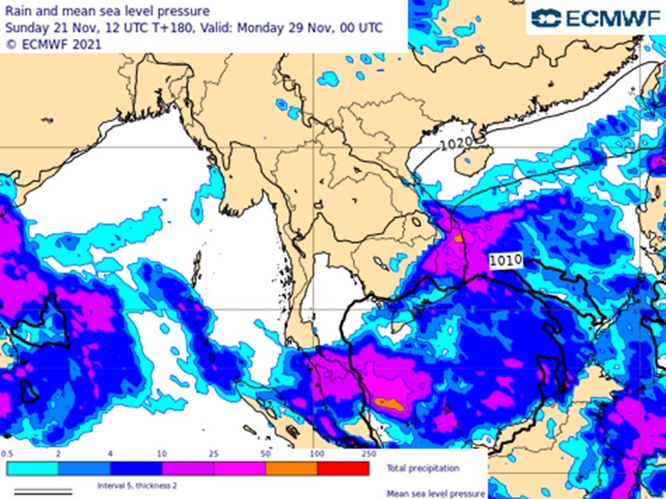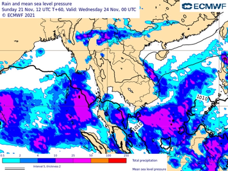 นายณัฐพล ณัฏฐสมบูรณ์ อธิบดีกรมอุตุนิยมวิทยากล่าวว่า อากาศทางตอนบนของประเทศไทยจะเริ่มเย็นลงตั้งแต่วันที่ 24-29 พ.ย. เนื่องจากระหว่างวันที่ 23 – 28 พ.ย. บริเวณความกดอากาศสูงหรือมวลอากาศเย็นกำลังค่อนข้างแรงระลอกใหม่จากประเทศจีน จะแผ่ลงมาปกคลุมประเทศไทยตอนบนและทะเลจีนใต้ ทำให้ตะวันออกเฉียงเหนือ อุณหภูมิจะลดลง 4-6 องศาเซลเซียส โดยต่ำสุดช่วงเช้าประมาณ 16 องศาเซลเซียส ส่วนภาคเหนือตอนบนประมาณ 18 องศาเซลเซียส ภาคกลางและภาคตะวันออกอุณหภูมิจะลดลง 2-4 องศาเซลเซียส โดยกรุงเทพมหานครอากาศเย็นช่วงเช้าตรู่ อุณหภูมิต่ำสุด 23 องศาเซลเซียส จากนั้นอากาศจะเริ่มอุ่นขึ้นตั้งแต่วันที่ 30 พ.ย. จนกว่ามวลอากาศเย็นจะแผ่ลงมาอีกระลอก