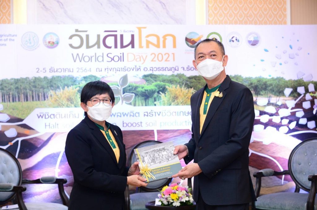 ด้าน นางสาวเบญจพร ชาครานนท์ อธิบดีกรมพัฒนาที่ดิน กล่าวเพิ่มเติมว่า การจัดงานวันดินโลกปี 2564 นี้ ได้กำหนดจัดขึ้น ณ ทุ่งกุลาร้องไห้ สถานีพัฒนาที่ดินร้อยเอ็ด อ.สุวรรณภูมิ จ.ร้อยเอ็ด ซึ่งในอดีตเป็นพื้นที่แห้งแล้งและดินมีความเค็ม กรมพัฒนาที่ดิน ได้เข้าไปดำเนินการพัฒนาแหล่งน้ำอย่างเป็นระบบด้วยการจัดระบบอนุรักษ์ดินและน้ำ พร้อมทั้งให้คำแนะนำในการปรับปรุงบำรุงดินในทุกมิติ มาใช้ในการแก้ไขปัญหาให้กับเกษตรกรในพื้นที่ ทำให้พื้นที่ดินเค็มกลายเป็นดินเค็มที่มีความพอดี และนั่นคือคุณสมบัติพิเศษของทุ่งกุลาร้องไห้ ที่ทำให้ข้าวที่ปลูกที่นี่มีความอร่อย หอม แตกต่างจากที่อื่น สามารถเป็นแบบอย่างในการพัฒนาการเกษตรของประเทศต่อไป