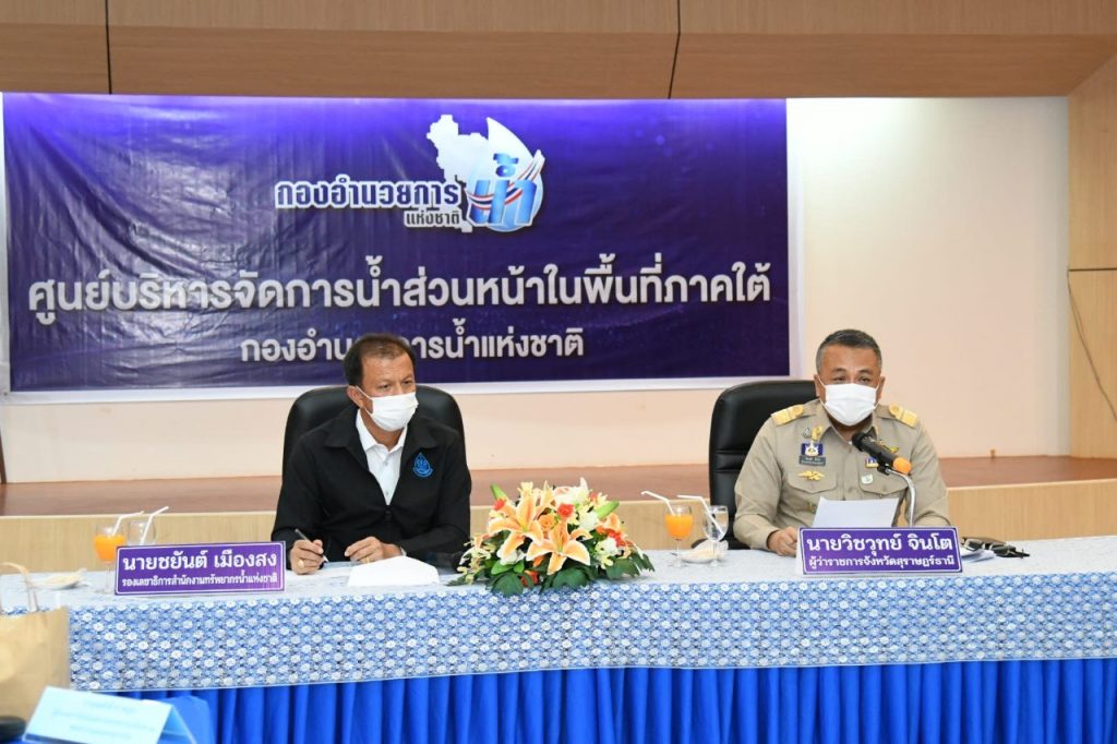 นายชยันต์ เมืองสง รองเลขาธิการสำนักงานทรัพยากรน้ำแห่งชาติ (สทนช.) ในฐานะเลขานุการกองอำนวยการน้ำแห่งชาติเป็นประธานการประชุมคณะทำงานด้านอำนวยการบริหารจัดการน้ำส่วนหน้าในพื้นที่เสี่ยงภาคใต้ร่วมกับนายวิชวุทย์ จินโต ผู้ว่าราชการจังหวัดสุราษฎร์ธานี พร้อมทุกหน่วยงานที่เกี่ยวข้อง โดยกล่าวว่า พลเอก ประวิตร วงษ์สุวรรณ รองนายกรัฐมนตรี ในฐานะผู้อำนวยการกองอำนวยการน้ำแห่งชาติ (กอนช.) ห่วงสถานการณ์น้ำภาคใต้ เนื่องจากลมมรสุมตะวันออกเฉียงเหนือที่พัดปกคลุมภาคใต้และอ่าวไทยมีกำลังแรงขึ้นพร้อมกับมีหย่อมความกดอากาศต่ำปกคลุมบริเวณภาคใต้ตอนล่าง ส่งผลให้ภาคใต้จะมีฝนตกเพิ่มขึ้น และมีฝนตกหนักถึงหนักมากในบางแห่ง โดยเฉพาะบริเวณจังหวัดประจวบคีรีขันธ์ ชุมพร สุราษฎร์ธานี นครศรีธรรมราช พัทลุง สงขลา ระนอง ยะลา ปัตตานี และนราธิวาส โดยเฉพาะ 3 จังหวัดชายแดนภาคใต้คือ ยะลา ปัตตานี และนราธิวาส ซึ่งทุกหน่วยงานร่วมกันเตรียมรับมือล่วงหน้า