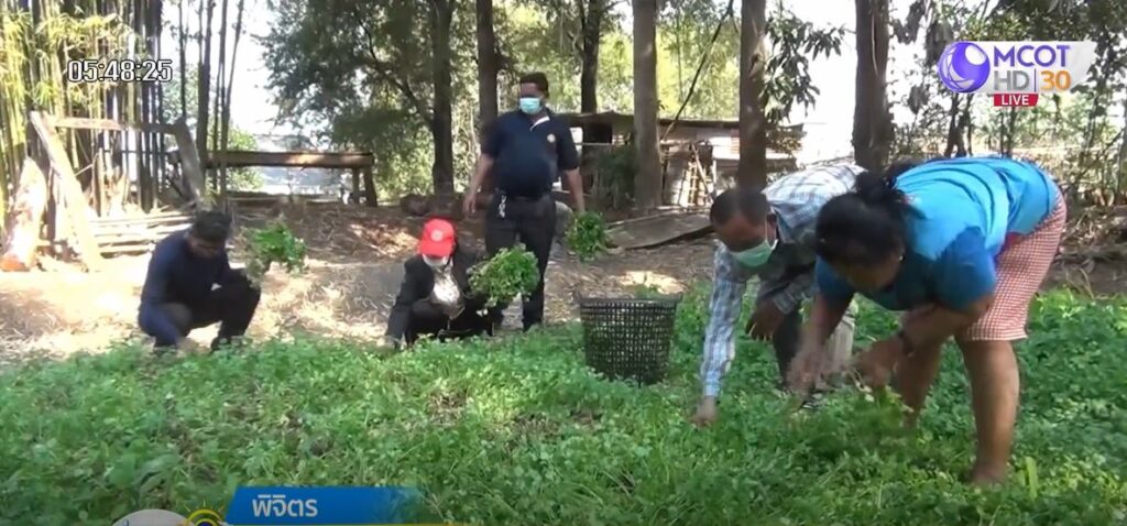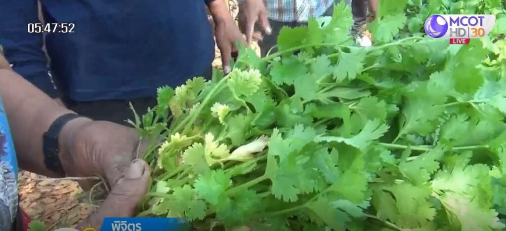 นางมานะ ปัทะพี วัย 62 ปี เร่งเก็บผักสวนครัวที่ปลูกไว้บริเวณหน้าบ้าน พื้นที่หมู่ 3 ตำบลหนองปล้อง อำเภอวังทรายพูน จังหวัดพิจิตร เพื่อนำมามัดทำเป็นกำสำหรับจำหน่าย ราคากำละ 10 บาท หลังสภาพอากาศหนาวเย็นส่งผลดีต่อผักสวนครัวเจริญเติบโตและไม่ต้องรดน้ำบ่อยครั้ง เนื่องจากมีน้ำค้างใช้เลี้ยงใบและลำต้นได้ดีกว่าช่วงฤดูร้อน