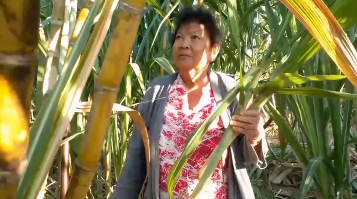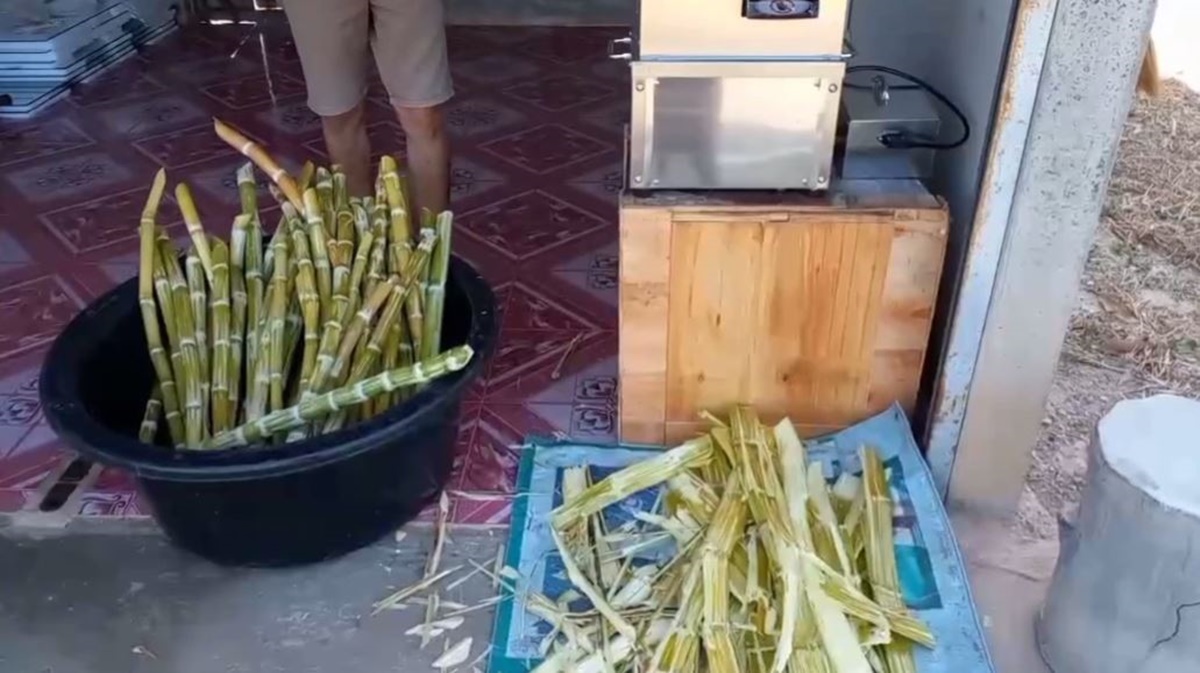 นางสุพิศ กกแก้ว อายุ 74 ปี พาทีมข่าวไปตัดอ้อย สายพันธุ์สุพรรณ 50 บนเนื้อที่กว่า 2 ไร่ ในพื้นที่บ้านกระจาย ต.กระจาย อ.ป่าติ้ว จ.ยโสธร ก่อนนำมาคั้นน้ำขายเอง ราคาขวดละ 5 บาทเท่านั้น รับรองความหวานสดใหม่จากไร่ทุกวัน นอกจากนี้ยังจำหน่ายท่อนพันธุ์ด้วย ลูกค้าส่วนใหญ่ก็มาจากชาวบ้านภายในชุมชนและพื้นที่ใกล้เคียง