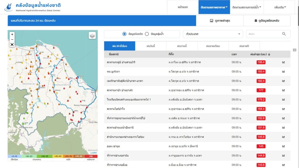 ล่าสุดมีรายงานจากสถาบันสารสนเทศทรัพยากรน้ำ (องค์การมหาชน) หรือ สสน. ถึงพื้นที่ที่มีฝนตกสะสมเกิน 100 มม. ในช่วง 24 ชั่วโมงที่ผ่านมาดังนี้