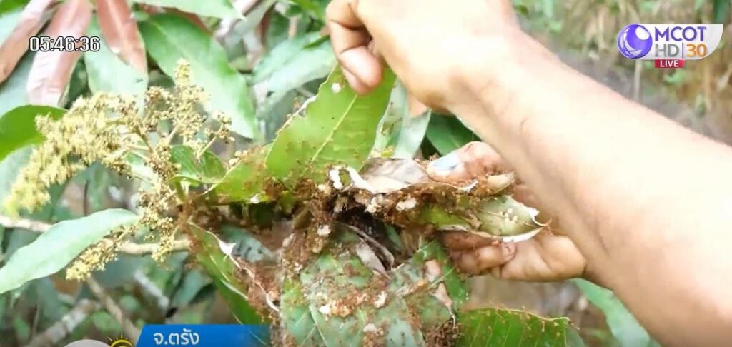 ตรัง 3 มี.ค. – ผู้ใหญ่บ้าน ต.อ่าวตง อ.วังวิเศษ จ.ตรัง เลี้ยงมดแดงบนต้นมะม่วง สร้างรายได้ช่วงหน้าแล้งนับหมื่นบาท