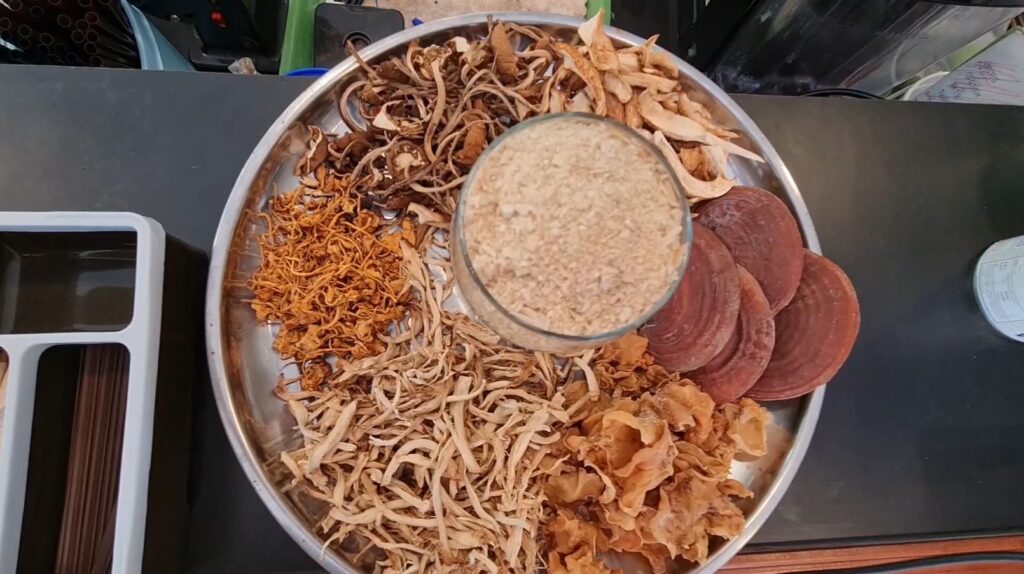 น้องแนน เล่าว่า คุณพ่อของเธอเป็นประธานกลุ่มเกษตรสร้างสรรค์ ตำบลดอนมะโนรา ได้ผลิตน้ำเห็ดเพื่อสุขภาพ ทั้งในรูปแบบเครื่องดื่มน้ำเห็ด 3 อย่าง, ชาเห็ด 8 ชนิด รวมถึงอาหารเมนูต่างๆ ตนกลับมาอยู่บ้าน ต้องการเปิดร้านกาแฟ จึงคิดหาจุดเด่นของร้าน เพื่อให้นักดื่มกาแฟ สนใจเข้ามาชิมกาแฟของตน จึงลองนำน้ำเห็ดของคุณพ่อมาผสมกาแฟ และลองผิดลองถูกของชิมอยู่นาน จึงประสบความสำเร็จ ได้สูตรกาแฟผสมเห็ด 8 ชนิด จากฟาร์มเห็ดของคุณพ่อที่ผ่านกระบวนการเพาะเลี้ยงดอกเห็ดที่ปลอดสารเคมีมาผลิต ทำให้เพิ่มสารอาหารต่างๆ เช่น โปรตีน คาร์โบไฮเดรต แคลเซียม ฟอสฟอรัส วิตามินบี 1 วิตามินบี 2 และเส้นใยแล้ว ยังช่วยเสริมสร้างร่างกายให้แข็งแรงสมดุล และจัดว่าเป็นยาบำรุงกำลังอย่างหนึ่ง