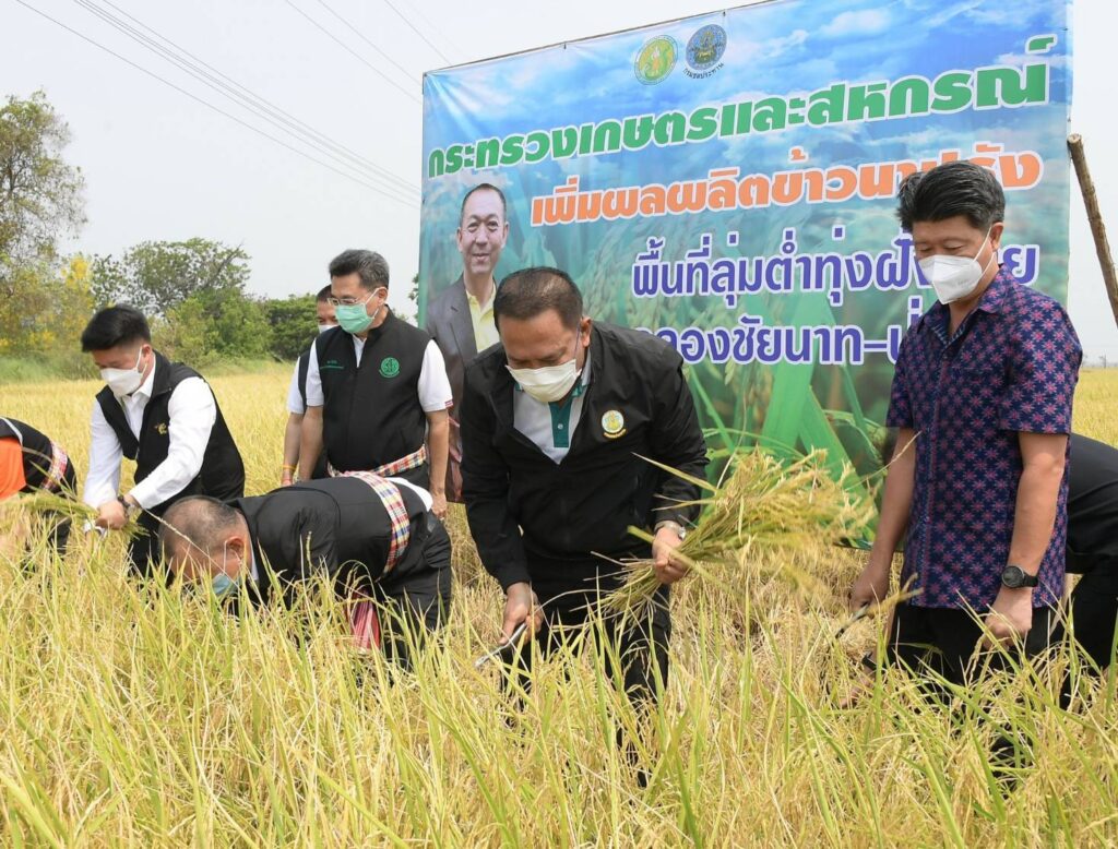 นายเฉลิมชัย ศรีอ่อน รัฐมนตรีว่าการกระทรวงเกษตรและสหกรณ์กล่าวว่า กรมชลประทานจะส่งน้ำให้เกษตรกรในพื้นที่ลุ่มต่ำทั้ง 10 ทุ่งของลุ่มเจ้าพระยาทำนาปีได้ตั้งแต่วันที่ 15 เม.ย. 65 ตามแผนปรับปฏิทินการเพาะปลูกข้าว เกษตรกรสามารถเริ่มเพาะปลูกข้าวได้ตั้งแต่วันที่ 1 พ.ค. ก่อนฤดูฝนซึ่งปกติเริ่มกลางเดือนพ.ค. ซึ่งจะทำให้เก็บเกี่ยวประมาณต้นเดือน ก.ย. ทันก่อนน้ำหลาก จากนั้นใช้พื้นที่ลุ่มต่ำช่วยรับน้ำเพื่อบรรเทาอุทกภัยในพื้นที่ตอนล่าง
