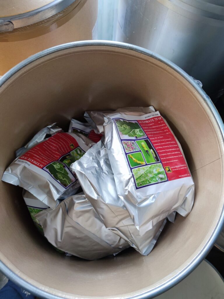 นอกจากนี้ยังตรวจพบผลิตภัณฑ์สารกำจัดแมลง 1 รายการ ทะเบียนวัตถุอันตรายหมดอายุ ปุ๋ยเคมี 3 รายการ ไม่มีเลขทะเบียน ต้องได้รับโทษ ตาม พ.ร.บ. ปุ๋ย พ.ศ.2518 และที่แก้ไขเพิ่มเติม โดยบทกำหนดโทษขายปุ๋ยเคมีไม่ขึ้นทะเบียน จำคุกตั้งแต่ 6 เดือนถึง 3 ปีและปรับตั้งแต่ 20,000 – 120,000 บาท เบื้องต้นตรวจสอบพบว่า สถานที่ดังกล่าวมีใบอนุญาตมีไว้ในครอบครองซึ่งวัตถุอันตรายและใบอนุญาตขายปุ๋ยถูกต้อง