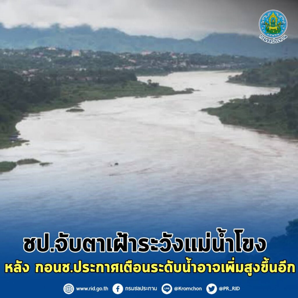 กรุงเทพฯ 25 พ.ค.-กรมชลประทาน สั่งการโครงการชลประทานตลอดริมแม่น้ำโขง เฝ้าระวังระดับน้ำอาจเพิ่มสูงขึ้น หลังกองอำนวยการน้ำแห่งชาติ (กอนช.) ออกประกาศ ฉบับที่ 15/2565 เรื่อง “แจ้งเตือนระดับน้ำในแม่น้ำโขงเปลี่ยนแปลงอย่างฉับพลัน” อีกระลอกช่วงวันที่ 25-26 พฤษภาคมนี้