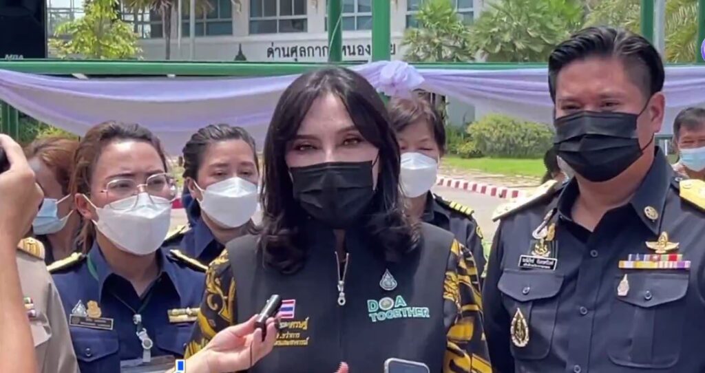 น.ส.มนัญญา ไทยเศรษฐ์ รัฐมนตรีช่วยว่าการกระทรวงเกษตรและสหกรณ์ พร้อมด้วย นายระพีภัทร์ จันทรศรีวงศ์ อธิบดีกรมวิชาการเกษตร เข้าฟังรายงานสถานการณ์การค้าชายแดน ที่ห้องประชุมด่านพรมแดนสะพานมิตรภาพไทย-ลาว แห่งที่ 1 อ.เมืองหนองคาย ก่อนเยี่ยมชมขั้นตอนการตรวจปล่อยทุเรียนส่งออกไปยังประเทศจีน ผ่านทางรถไฟสายไทย-ลาว-จีน ที่ลานตรวจสินค้า ด่านศุลกากรหนองคาย รวมทั้งตรวจติดตามโครงสร้างพื้นฐาน ได้แก่ อาคารกักกันพืช เตาเผาทำลายสินค้าตัวอย่าง เพื่อจัดเตรียมความพร้อมในการตรวจรับรองปริมาณงานในอนาคตในการให้บริการตรวจปล่อยสินค้าพืช ผลผลิตทางการเกษตรเพื่อนำเข้า นำผ่าน ส่งออก ที่ด่านตรวจพืชหนองคาย
