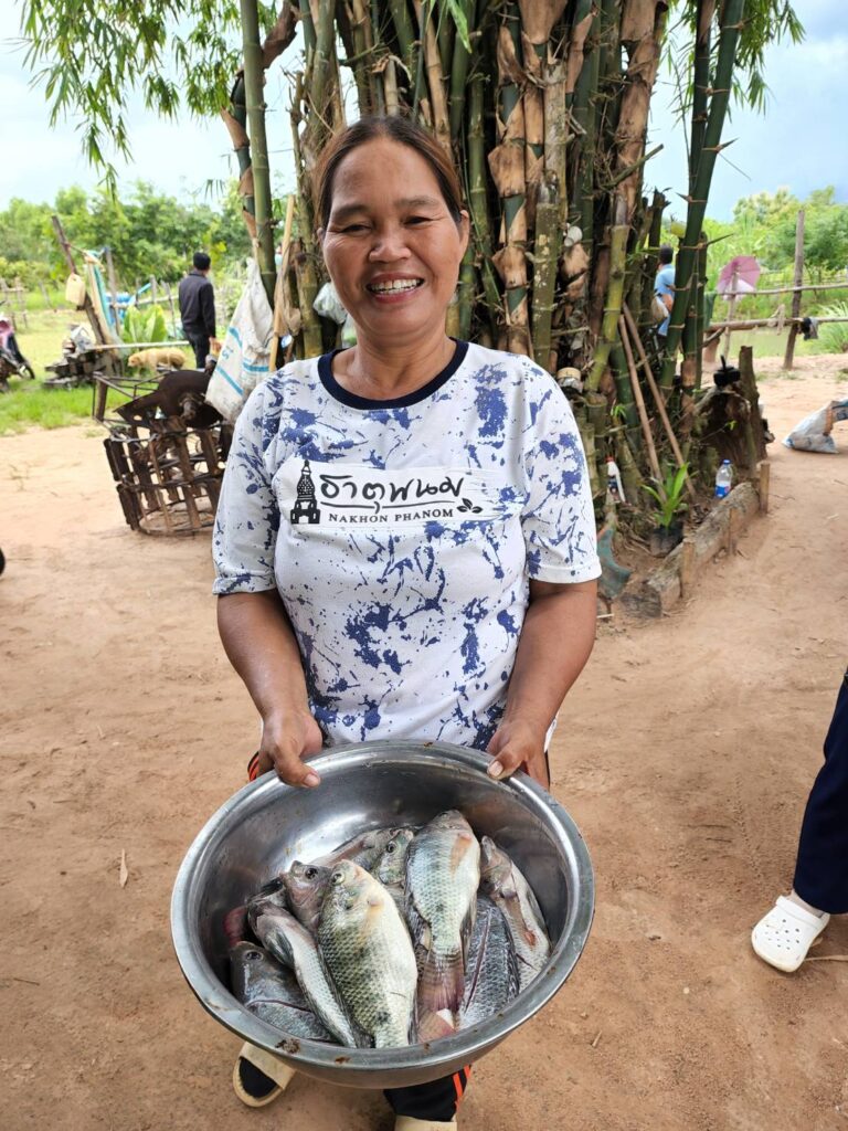 ด้าน นางจันทร์ชนก ระเวงวรรณ เกษตรกรสมาชิกสหกรณ์การเกษตรโสกแมว จำกัดอีกรายอาศัยอยู่ในพื้นที่คทช.ธาตุพนม ยึดอาชีพทำเกษตรผสมผสาน โดยได้รับจัดสรรที่ดินทำกินจำนวน 14 ไร่ แบ่งพื้นที่ส่วนหนึ่งทำนา และขุดบ่อเลี้ยงปลานิล 5,000 ตัว จำนวน 2 บ่อ เมื่อสิ้นฤดูเก็บเกี่ยวก็ได้ปรับเปลี่ยนที่นามาปลูกดาวกระจายเพื่อจำหน่ายเมล็ดพันธุ์ให้กับสมาชิก และยังเจียดพื้นที่ส่วนหนึ่งได้ปลูกผักสวนครัว เลี้ยงกระบือและเลี้ยงไก่พื้นเมือง โดยได้นำหลักปรัชญาเศรษฐกิจพอเพียงมาใช้เป็นแนวทางในการดำเนินชีวิตและประกอบอาชีพ สามารถสร้างรายได้ปีละไม่น้อยกว่า 170,000 บาท