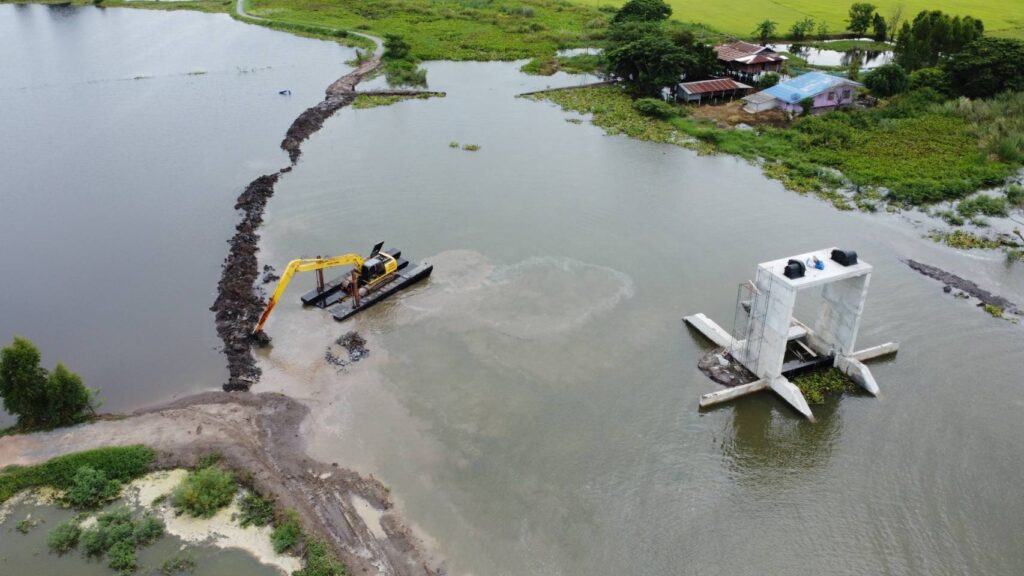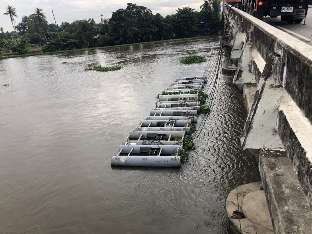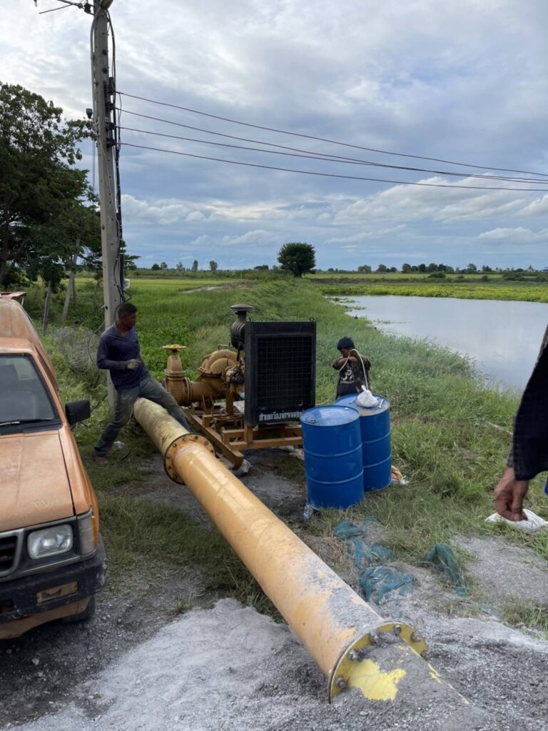 ล่าสุดสำนักเครื่องจักรกลได้ติดตั้งเครื่องผลักดันน้ำในแม่น้ำท่าจีนรวม 61 เครื่องเพื่อเร่งระบายน้ำออกที่ทะเลที่จ. สมุทรสาคร แม่น้ำท่าจีนรับน้ำจากแม่น้ำเจ้าพระยาผ่านประตูระบายน้ำพลเทพที่จ. ชัยนาท เมื่อปริมาณน้ำในแม่น้ำเจ้าพระยามากจะส่งผลให้แม่น้ำท่าจีนมีปริมาณน้ำเพิ่มขึ้นด้วย ประกอบกับแม่น้ำท่าจีนที่จ. นครปฐมยังได้รับอิทธิพลจากน้ำทะเลหนุนจึงต้องเตรียมแนวทางป้องกันทุกด้านเพื่อไม่ให้น้ำท่วมนาปีในทุ่งสองพี่น้อง บางเลน และโพธิ์พระยาจนกว่าจะเก็บเกี่ยวแล้วเสร็จทั้งหมด