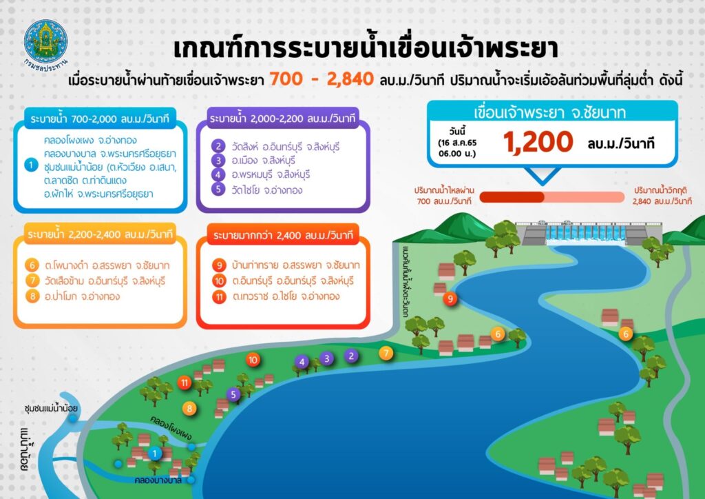 กรุงเทพฯ 16 ส.ค.- อธิบดีกรมชลประทานระบุ ปรับเพิ่มการระบายน้ำเขื่อนป่าสักชลสิทธิ์แบบขั้นบันได แต่ยังคงปริมาณการระบายจากเขื่อนเจ้าพระยาในอัตราเดิมตามแนวทางจัดจราจรน้ำของพื้นที่ที่เชื่อมโยงกันเพื่อบรรเทาผลกระทบต่อพื้นที่ลุ่มเจ้าพระยาด้านท้าย