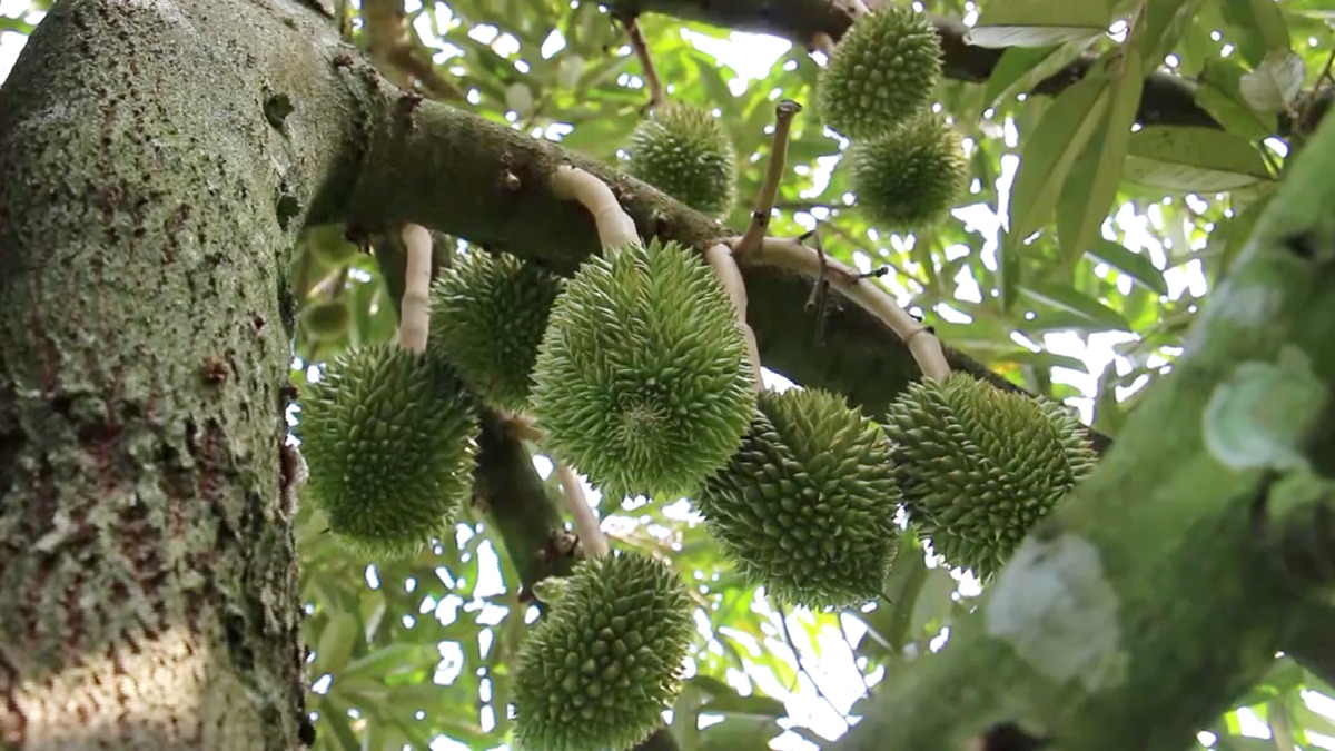 ส่วนวิธีการตัดแต่งลูกทุเรียน จะคัดลูกที่สวยกลม ไม่เบี้ยว พอโตขึ้นมาจะมีรูปทรงสวย ขายได้ราคาดี อย่างกิ่งมีหลายสิบลูก คัดให้เหลือแค่ประมาณ 2 ลูก เรียกว่าคัดเฉพาะที่สวยจริงๆ ตอนนี้ที่สวนเริ่มออกลูกแล้ว คาดว่าประมาณเดือนมิถุนายน จะเริ่มแก่สุกเก็บผลผลิตขายได้ เพราะทุเรียนจะเจริญเติบโตจากผลิดอกจนถึงเก็บผลผลิต ประมาณ 4 เดือนเศษขึ้นไป จะมีรสชาติสมบูรณ์ หวาน มัน ซึ่งหากตัดขายก่อนประมาณ 70% จะได้น้ำหนักสมบูรณ์ แต่เวลาบ่มกินจะมีรสชาติไม่เหมือนกับทุเรียนที่แก่จัด ช่วงระยะเวลา 4 เดือนขึ้นไป จึงจะมีรสชาติอร่อย หวาน มัน เนื้อแห้งเต็มที่
