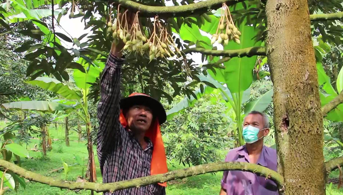 อย่างที่สวนของนายปรีชา เปี่ยมญาติ ปลูกทุเรียนพันธุ์หมอนทอง และพันธุ์ชะนี ผสมผสานไปกับการปลูกขนุน กล้วยไข่ กล้วยหอม มะละกอ ลองกอง มังคุด เนื้อที่เกือบ 10 ไร่ ขณะนี้เริ่มออกดอกตามกิ่งห้อยระย้า