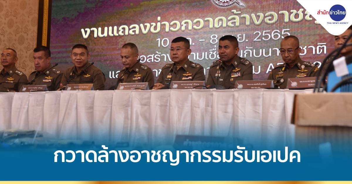 กรุงเทพฯ 8 พ.ย.- ผบ.ตร.โชว์ความพร้อมด้านความปลอดภัยประชุม APEC 2022 ระดมกวาดล้างอาชญากรรมทั่วประเทศครั้งใหญ่ จับผู้ต้องหาคดียาเสพติดและอาวุธปืนหมายจับค้างเก่ากว่า 60,000 ราย สร้างความเชื่อมั่นให้นานาชาติ