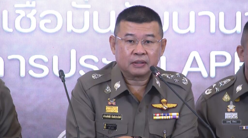 ส่วนที่สำนักงานตำรวจแห่งชาติ พล.ต.อ.ดำรงศักดิ์ กิตติประภัสร์ ผบ.ตร. พร้อมด้วย รอง ผบ.ตร. และผู้บัญชาการหลายกองบัญชาการ ร่วมแถลงผลการระดมกวาดล้างอาชญากรรม เพื่อสร้างความเชื่อมั่นกับนานาชาติ และประชาชน ก่อนการประชุม APEC 2022 .-สำนักข่าวไทย