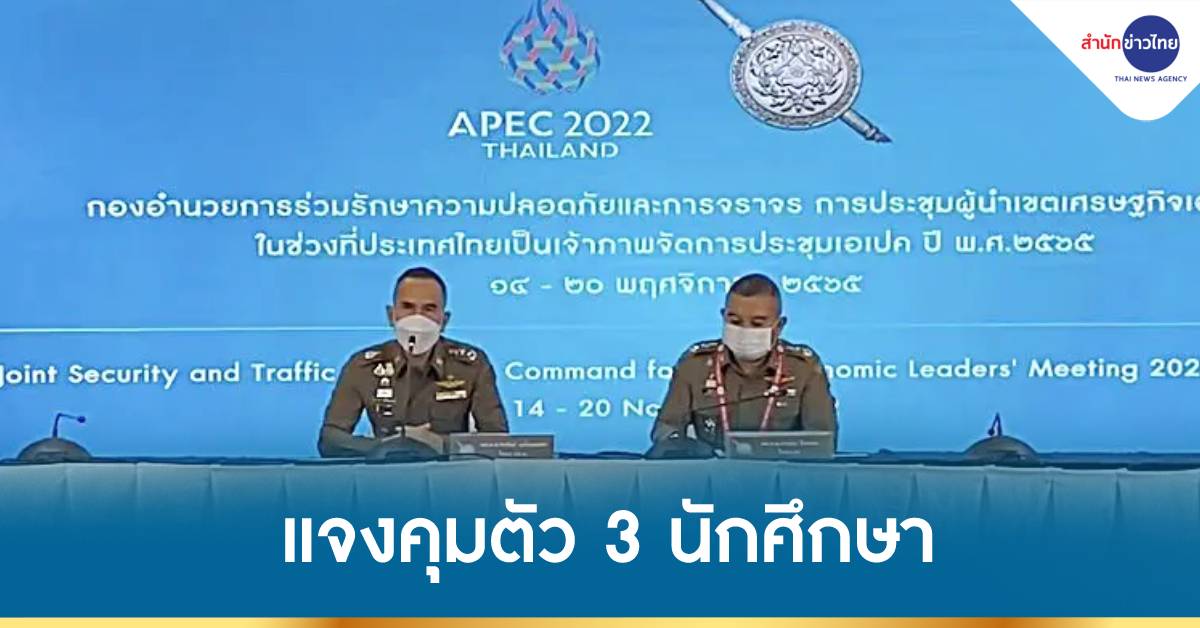 ผู้สื่อข่าวรายงานว่า จากกรณีที่ทางสมาพันธ์นิสิตนักศึกษามุสลิมแห่งประเทศไทย (MUSTFETH) ระบุว่ามีเจ้าหน้าที่ตำรวจของสถานีตำรวจนครบาล หัวหมาก เข้าควบคุมตัว 3 นักศึกษามหาวิทยาลัยรามคำแหงที่ห้องพัก โดยให้เหตุผลว่านักศึกษาทั้ง 3 อาจก่อความวุ่นวายระหว่างการประชุมความร่วมมือทางเศรษฐกิจในภูมิภาคเอเชีย-แปซิฟิก 2022 หรือ APEC 2022 พล.ต.ต.อาชยน ไกรทอง โฆษกสำนักงานตำรวจแห่งชาติ กล่าวว่า การควบคุมตัวครั้งนี้เกิดจากการข่าวที่เชื่อได้ว่ากลุ่มนักศึกษาอาจก่อเหตุความวุ่นวายระหว่างการประชุมเอเปค 2022 ตำรวจจึงจำเป็นต้องบังคับใช้กฎหมายควบคุมตัวเพื่อป้องกันการเกิดเหตุไว้ก่อนขั้นต้น และกำลังตรวจค้นเป้าหมายที่ต้องสงสัยว่ามีความเกี่ยวข้องเพิ่มเติมหรือไม่ ส่วนในรายละเอียดยังไม่สามารถเปิดเผยได้ แต่เบื้องต้นตำรวจยังไม่ได้แจ้งข้อกล่าวหาใด ๆ
