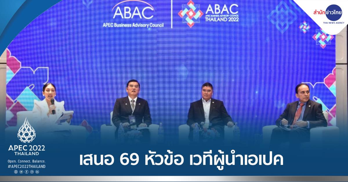ดิ แอทธินี โฮเทล 16 พ.ย. – สภาที่ปรึกษาทางธุรกิจเอเปค ABAC ได้ข้อสรุป 69 ข้อ ครอบคลุม 5 ด้าน เศรษฐกิจ ดิจิทัล เอสเอ็มอี ความยั่งยืน การเงิน พร้อมเรื่องเร่งด่วนทั้งเงินเฟ้อ-อาหาร-climate change ส่งมอบเวทีผู้นำเอเปค 18 พ.ย.นี้