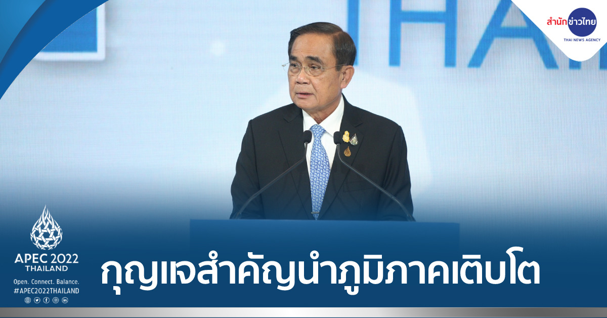 “ไทยกำลังขับเคลื่อนความร่วมมือเอเปคในประเด็นที่ท้าทาย อย่างการค้าและการลงทุนใหม่ ๆ การเปลี่ยนผ่านไปสู่ดิจิทัล ความจำเป็นในการเชื่อมโยงห่วงโซ่อุปทานและการเดินทาง วาระความยั่งยืนของโลก ซึ่งภายใต้หัวข้อหลักเหล่านี้ ไทยได้ใช้แนวคิดเศรษฐกิจบีซีจี ที่ผสานแนวคิดเศรษฐกิจชีวภาพ เศรษฐกิจหมุนเวียน และเศรษฐกิจสีเขียวเข้าด้วยกัน เป็นยุทธศาสตร์ในการฟื้นฟูจากผลกระทบของโควิด-19 และเป็นแผนแม่บทสำหรับการพัฒนาและเติบโตในระยะยาวที่สมดุล ยั่งยืน และครอบคลุม เพื่อให้ไปถึงเป้าหมายดังกล่าวได้สำเร็จ จึงขอความร่วมมืออย่างเข้มแข็งระหว่างภาครัฐและเอกชนคือกุญแจสำคัญที่จะนำพาภูมิภาคเอเชีย-แปซิฟิก เติบโตไปด้วยกัน โดยไม่ทิ้งใครไว้ข้างหลัง” นายกรัฐมนตรี กล่าว