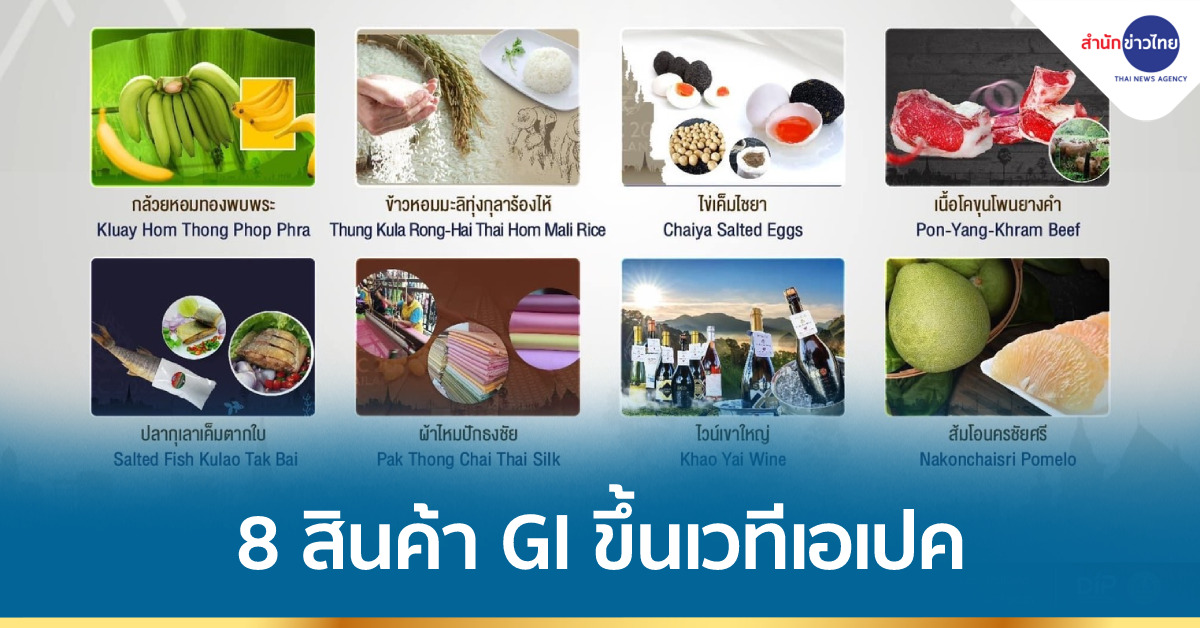 นายวุฒิไกร ลีวีระพันธุ์ อธิบดีกรมทรัพย์สินทางปัญญา กล่าวว่า การที่ประเทศไทยได้รับเกียรติให้เป็นเจ้าภาพการประชุมเอเปคครั้งนี้ นับเป็นอีกหนึ่งโอกาสสำคัญในการเผยแพร่อัตลักษณ์และคุณภาพของสินค้า GI ไทยให้เป็นที่รู้จักในระดับนานาชาติ โดยเฉพาะผู้นำจาก 21 เขตเศรษฐกิจ ซึ่งรัฐบาลได้คัดเลือกสินค้า GI เข้ามามีส่วนร่วมในการประชุมดังกล่าวเพื่อนำเสนออัตลักษณ์ความเป็นไทย ผ่านเมนูอาหารที่อาศัยวัตถุดิบ GI ประกอบด้วย ข้าวหอมมะลิทุ่งกุลาร้องไห้ ของจังหวัดศรีสะเกษ ร้อยเอ็ด ยโสธร สุรินทร์ และมหาสารคาม เนื้อโคขุนโพนยางคำ จังหวัดสกลนคร ปลากุเลาเค็มตากใบ จังหวัดนราธิวาส ไวน์เขาใหญ่ จังหวัดนครราชสีมา ส้มโอนครชัยศรี จังหวัดนครปฐม ไข่เค็มไชยา จังหวัดสุราษฎร์ธานี และว่าที่สินค้า GI กล้วยหอมทองพบพระ จังหวัดตาก