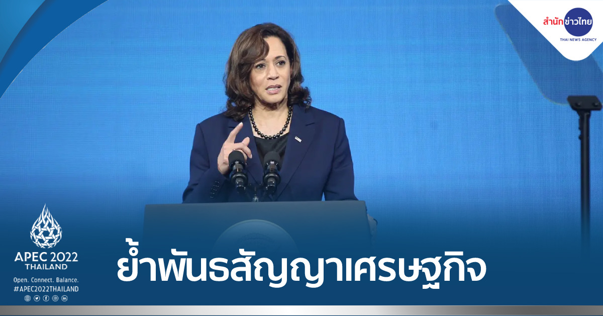 นางคามาลา แฮร์ริส รองประธานาธิบดีสหรัฐอเมริกา กล่าวปาฐกถาพิเศษในการประชุมสุดยอดผู้นำภาคเอกชนของเอเปค หรือ APEC CEO Summit 2022 ย้ำถึงพันธสัญญาของสหรัฐ ในการเสริมสร้างความเข้มแข็งของความสัมพันธ์ทางเศรษฐกิจ และความเป็นหุ้นส่วนอย่างทั่วถึงในภูมิภาคอินโดแปซิฟิก เพราะภูมิภาคเอเชียตะวันออกเฉียงใต้และอินโดแปซิฟิกมีความสำคัญอย่างยิ่งต่อสหรัฐ ซึ่งพันธสัญญาทางเศรษฐกิจของสหรัฐต่อภูมิภาคจะคงอยู่ยาวนานไปอีกหลายทศวรรษ