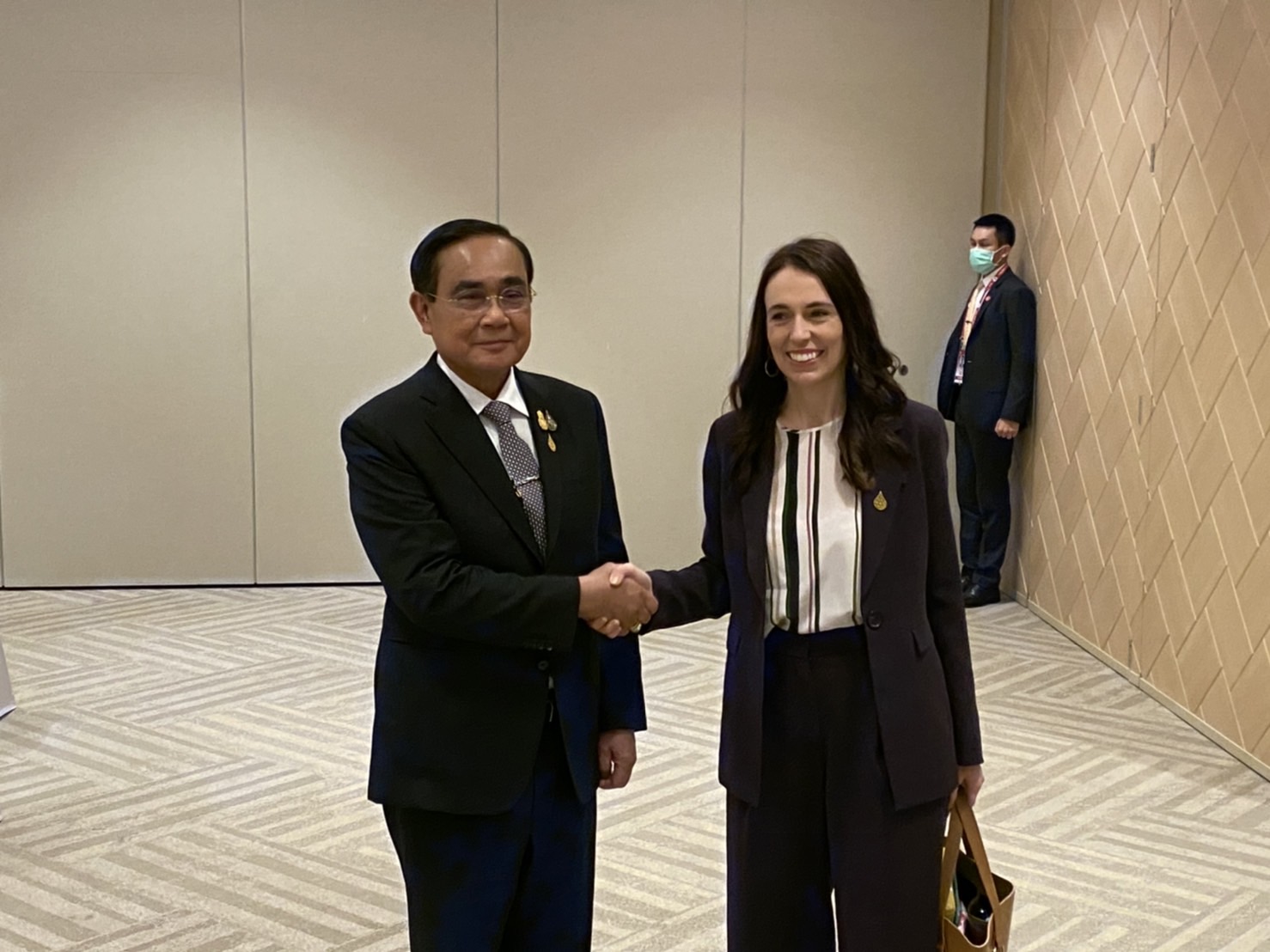 จากนั้น นายกรัฐมนตรีหารือทวิภาคีกับน.ส.จาชินดา อาร์เดิร์น นายกรัฐมนตรีนิวซีแลนด์ เพื่อเสริมสร้างความร่วมมือในกรอบพหุภาคี ทั้งในอนุภูมิภาคลุ่มน้ำโขง อาเซียน หวังการเพิ่มมูลค้าทางการค้าและการลงทุนมากขึ้น รวมทั้งดึงนักลงทุนจากนิวซีแลนด์ เข้ามาร่วมลงทุนในเขตเศรษฐกิจพิเศษ EEC โดยเฉพาะในอุตสาหกรรมที่นิวซีแลนด์มีความเชี่ยวชาญ เช่น การเกษตรอัจฉริยะ เทคโนโลยีชีวภาพ สอดคล้องกับแนวคิดเศรษฐกิจ BCG ของไทย และแผนเศรษฐกิจ 30 ปีของนิวซีแลนด์ จึงต้องการสร้างความร่วมมือด้านเทคโนโลยีการเกษตรและปศุสัตว์ รองรับการผลิตน้ำนมดิบอย่างยั่งยืนของเกษตรกรโคนมไทย เพื่อพัฒนาโคนมระหว่างกัน ตลอดจนความร่วมมือด้านนวัตกรรมอาหาร