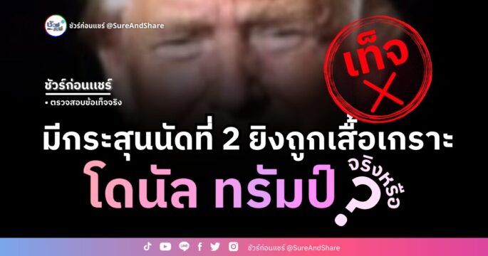 ภาพที่คล้ายรูกระสุนบนแจ็กเก็ตของโดนัลด์ ทรัมป์ แท้จริงแล้วคือรอยพับแขนเสื้อแจ็กเก็ตของเจ้าหน้าที่ Secret Service