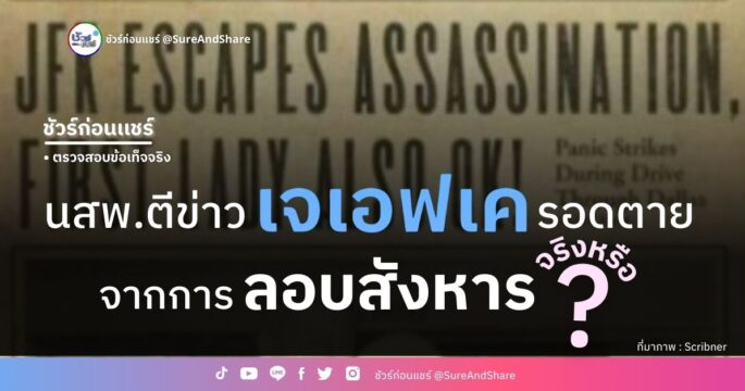 27 พฤศจิกายน 2566แปลและเรียบเรียงบทความโดย: อดิศร สุขสมอรรถตรวจทานและพิสูจน์อักษร : คมส์ธนนท์ ศุขอัจจะสกุล ข้อมูลที่ถูกแชร์ : มีข้อมูลสร้างความเข้าใจผิดเผยแพร่ทางสื่อสังคมออนไลน์ในสหรัฐอเมริกา เมื่อมีการแชร์ข่าวพาดหัวหนังสือพิมพ์เก่าที่รายงานว่า จอห์น เอฟ. เคนเนดี อดีตประธานาธิบดีสหรัฐอเมริกาที่โด่งดังไปทั่วโลกจากเหตุลอบสังหารเมื่อวันที่ 22 พฤศจิกายน 1963 แท้จริงแล้วกลับรอดชีวิตจากการเหตุการณ์ครั้งนั้นมาได้ บทสรุป : เป็นข่าวพาดหัวจากจินตนาการของ สตีเฟน คิง นักเขียนนิยายสยองขวัญ ที่ปรากฏบนหลังนิยายเรื่อง 11/22/63 ที่ตีพิมพ์ในปี 2011 FACT CHECK : ตรวจสอบข้อเท็จจริง : อย่างไรก็ดี จากการตรวจสอบโดย Reuters Fact Check ยืนยันว่า ข้อความไม่ตรงกับข้อเท็จจริงทางประวัติศาสตร์และไม่ใช่การรายงานข่าวจากหนังสือพิมพ์เช่นกัน ข้อความพาดหัวข่าวที่ถูกแชร์ นำมาจากปกหลังของนิยายปี 2011 เรื่อง 11/22/63 นิยายลำดับที่ 49 ของ สตีเฟน คิง นักเขียนนิยายสยองขวัญชื่อดังชาวอเมริกัน เนื้อหาของ 11/22/63 […]