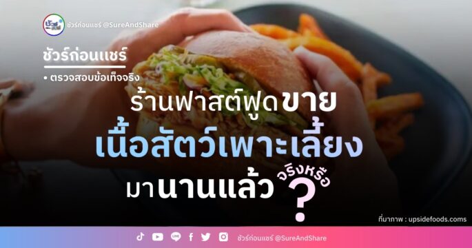 นอกจาก เนื้อสัตว์จากพืชหรือ Plant-Based Meat แล้ว ไม่มีร้านฟาสต์ฟูดแห่งใดนำเนื้อสัตว์เพาะเลี้ยงหรือ Lab-Grown Meat มาขายในร้านตามที่กล่าวอ้าง