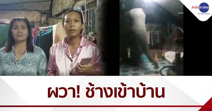 ชาวบ้านผวาช้างป่าบุกพังรั้วเข้าไปถึงข้างในบ้าน เจ้าหน้าที่ต้องช่วยกันผลักดันออกไป