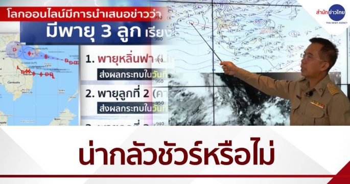 มีกระแสข่าวแพร่สะพัดทางโลกออนไลน์ ว่าไทยจะต้องเจอกับพายุที่เตรียมเข้าถล่มมากถึง 3 ลูก วันนี้ทีมข่าวไปสอบถามข้อเท็จจริงกับกรมอุตุนิยมวิทยาในประเด็นนี้ว่าเกิดขึ้นจริงหรือไม่ และควรต้องเฝ้าระวังและรับมืออย่างไร