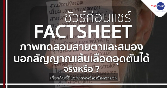 บนสังคมออนไลน์ แชร์ภาพทดสอบสายตาและความผิดปกติของสมองซีกซ้ายขวาได้ ถ้าใครมองเห็นภาพได้ด้านเดียว แสดงว่ามีอาการเริ่มเป็นเส้นเลือดอุดตันในสมองแล้ว แต่ข้อเท็จจริงเรื่องนี้เป็นอย่างไร ติดตามจากศูนย์ชัวร์ก่อนแชร์
