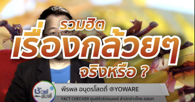 บนโซเชียลมีการแชร์ถึงสรรพคุณกล้วยเอาไว้มากมาย บ้างก็ว่ากินน้ำจากต้นกล้วยช่วยแก้อาการกรดไหลย้อน บ้างก็บอกว่ากล้วยน้ำว้ามีประโยชน์มากมาย