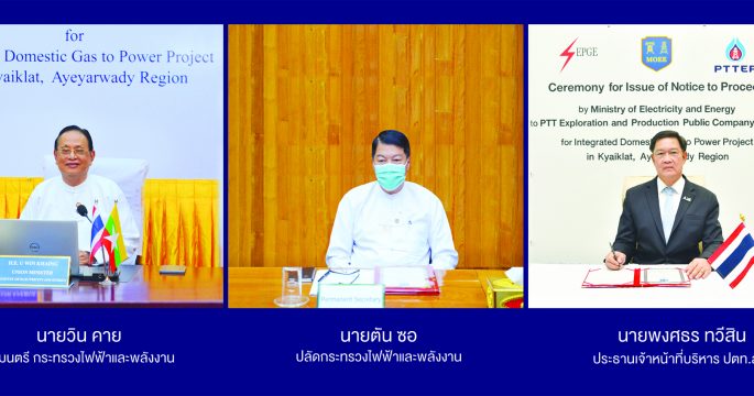 กรุงเทพฯ, 30 ธันวาคม 2563 – บริษัท ปตท.สำรวจและผลิตปิโตรเลียม จำกัด (มหาชน) หรือ ปตท.สผ. ได้รับการอนุมัติจากรัฐบาลเมียนมาให้เดินหน้าพัฒนาโครงการผลิตไฟฟ้าจากก๊าซธรรมชาติในเมียนมา (Integrated Domestic Gas to Power) 600 เมกะวัตต์