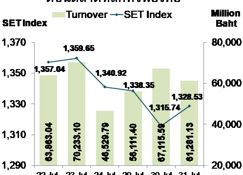กรุงเทพฯ 1 ส.ค.-เงินบาท แข็งค่า หุ้นไทยร่วงลงตามแรงขายของนักลงทุนสถาบันและต่างชาติ “กสิกรไทย” คาดสัปดาห์หน้า กรอบเงินบาท 30.90-31.40 บาทต่อดอลลาร์ฯ ดัชนีหุ้นไทยมีแนวรับที่ 1,315 และ 1,300 จุด ขณะที่แนวต้านอยู่ที่ 1,350 และ 1,365 จุด