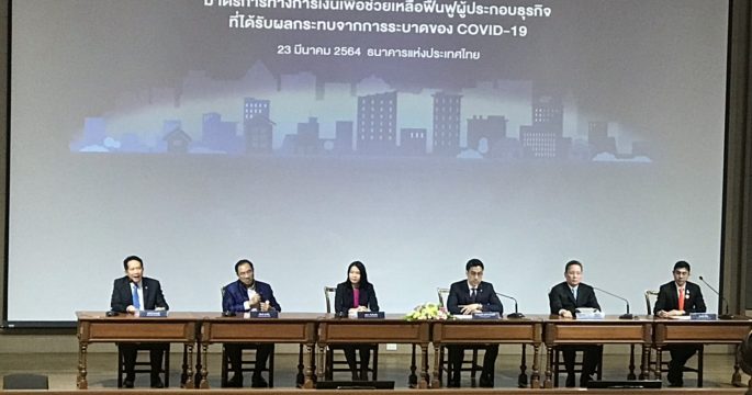 ธปท. 23 มี.ค. – คลัง – แบงก์ชาติ ผุด สินเชื่อฟื้นฟู – โครงการพักทรัพย์ พักหนี้ ช่วยเหลือผู้ประกอบธุรกิจจากโควิด-19 วงเงิน 3.5 แสนล้าน หนุนกลุ่มรายย่อย เสริมสภาพคล่อง คาดดำเนินการได้พ.ค.นี้ ด้านศูนย์วิจัยกสิกรไทย ชี้ กลุ่มที่ไม่มีที่ดินเป็นของตนเอง ไม่ได้รับประโยชน์